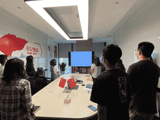 而后,,,,全体党员一起重新学习了解了目前的入党流程要求,,各支部也将在后续工作中进一步发挥支部职能,,,做好发展党员工作。。。。最后,,全体党员面向党旗,,,,重温入党誓词。。。