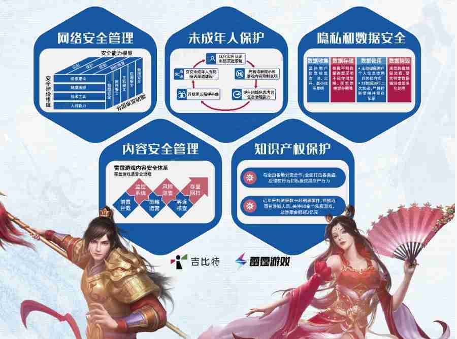 本次一竞技展区以网络安全管理、、内容安全管理、、、、未成年人保护、、、、隐私和数据安全、、、知识产权保护五个模块介绍公司游戏安全工作成果,,,体现一竞技高度重视网络安全,,,严格遵守相关法律法规要求,,,积极承担企业主体责任。。。。