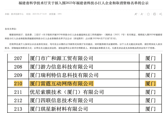 此次再次入选福建省科技小巨人企业既是对雷霆互动创新能力的认可,,,也是对市场发展潜力及综合实力的高度肯定。。。。