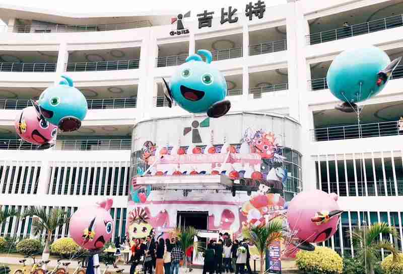 12月15日,,,为了庆祝《不思议迷宫》一周岁生日,,冈布奥们准备了众多花式庆生活动::::厦门一竞技大楼变身巨型蛋糕、、女仆小姐姐为大家奉上美味小蛋糕、、、更有大头冈布奥飞上天……引来不少冒险者身亲临现场为冈布奥打Call!!!!